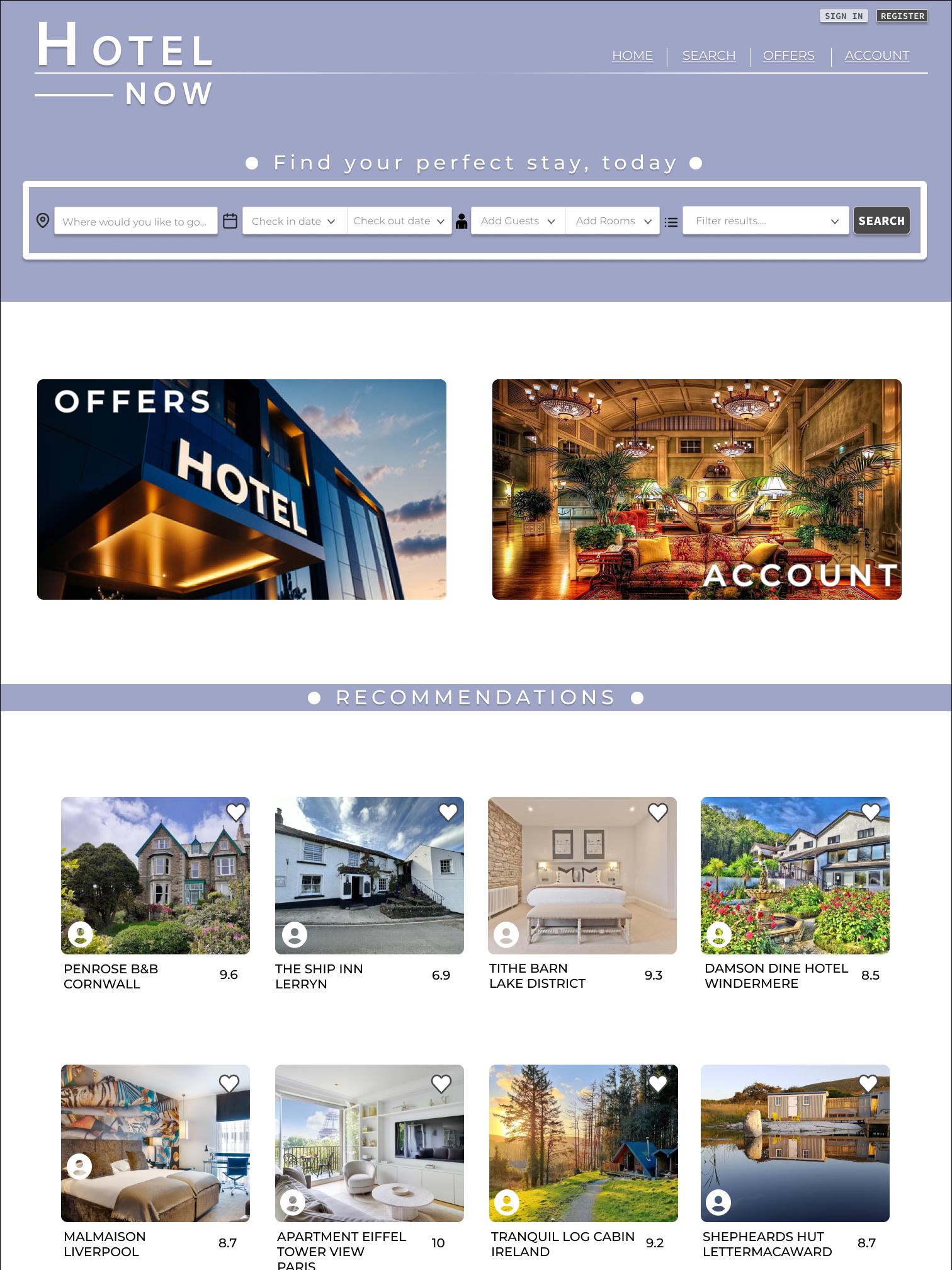 While studying at the UX Design Institute, I designed a new hotel booking system. I researched user opinions on current hotel websites, which helped me identify what works well and what could be improved.