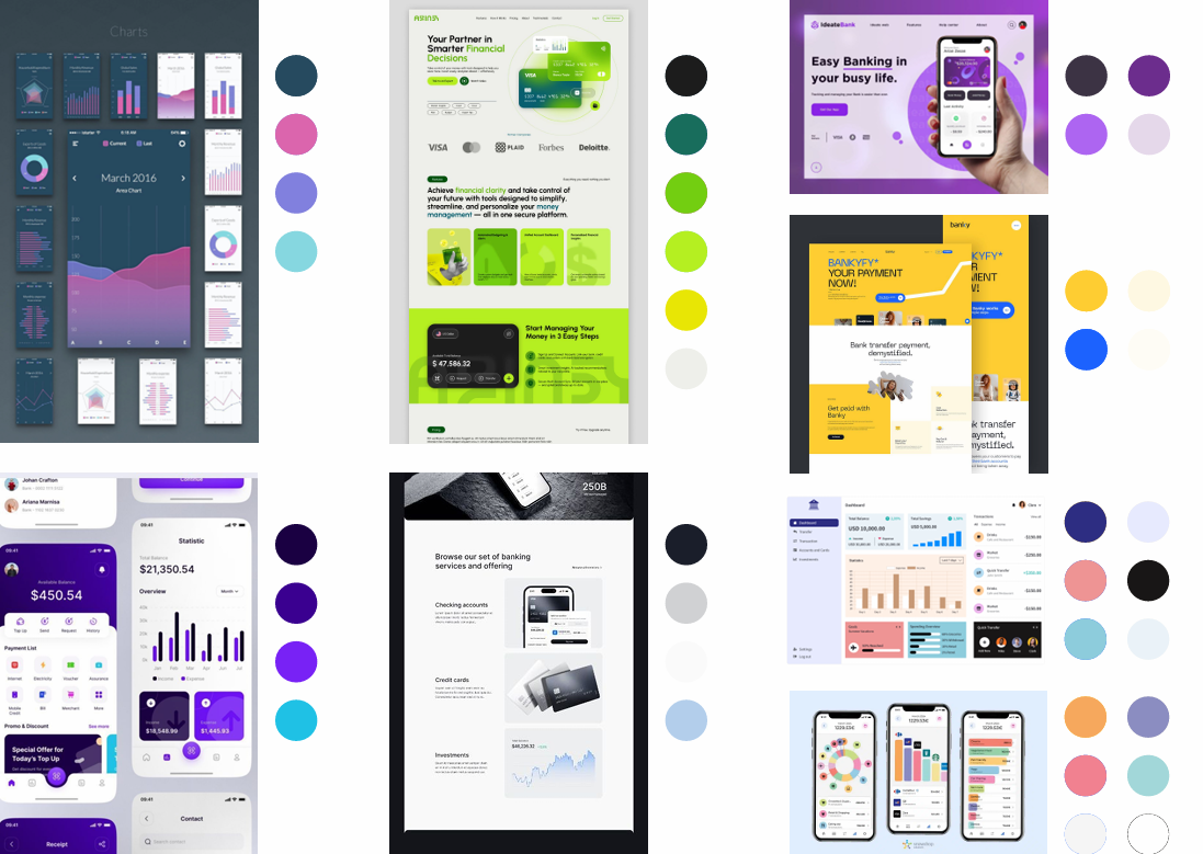 To start, I gathered a collection of websites and apps and created three mood boards. I took inspiration from banking sites as well as other brands that possess the qualities of clear, trustworthy and playful. I included examples across all three design platforms to see how different platforms and screen sizes affect hierarchy and layout of the page.
